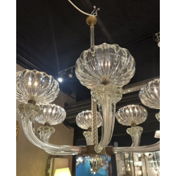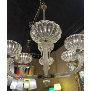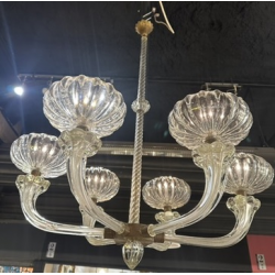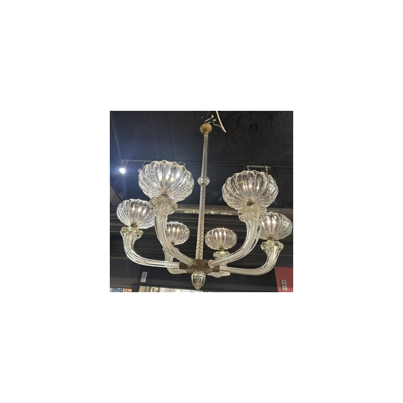 Elegant Barovier chandelier, in Murano glass and golden brass, 6 arms of Lights finished by very wide cups.