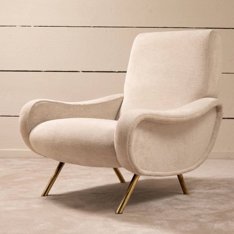 Beautiful pair of Italian armchairs Model Lady, fully restored fabric and high-end finishes.