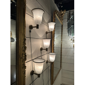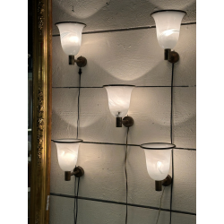 Set of 5 sconces by Barovier and Toso in dark patina brass and Murano opaline glass.