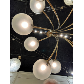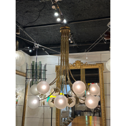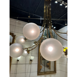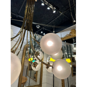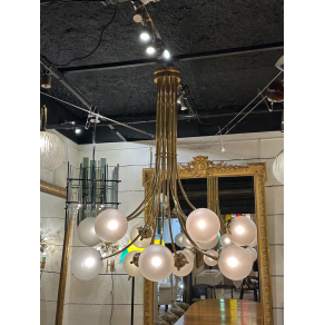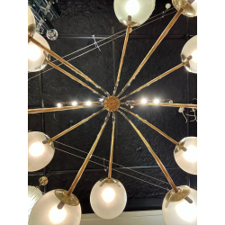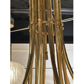 Very large chandelier in brass, gold-plated and Murano glass. The exceptionally large structure has been completely cleaned while retaining its patina and fully electrified.