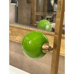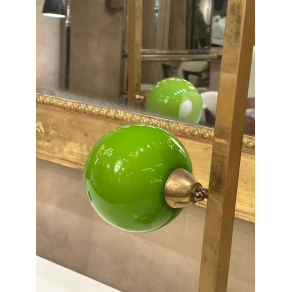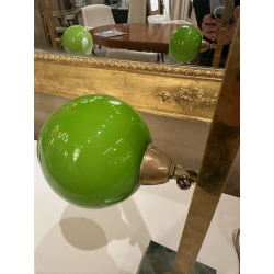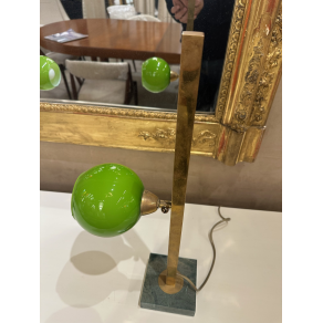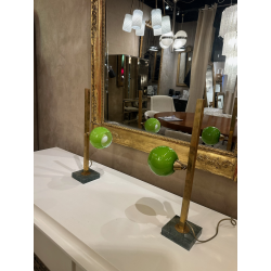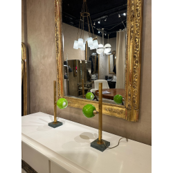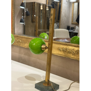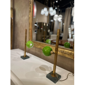 Pair of lamps in gilded brass, marble base, Murano glass, light green in color, fully restored and electrified.