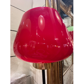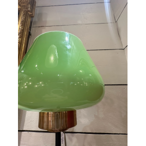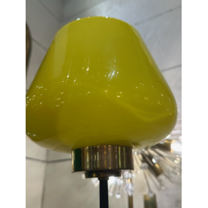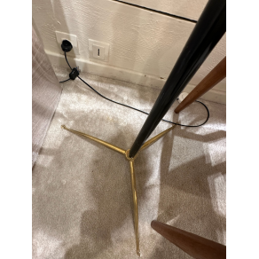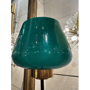 Pair of large asymmetrical floor lamps in brass, gold, métal, lacquered black, and beautiful colored glass.