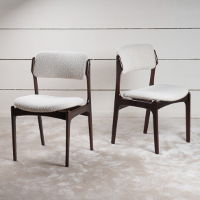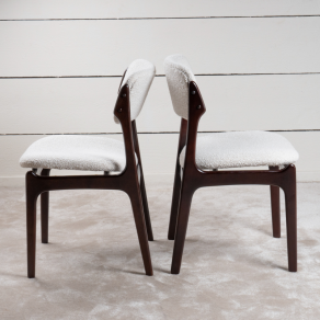Beautiful set of 10 Scandinavian chairs in dark teak, fully restored with fabric and high-end finishes.