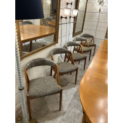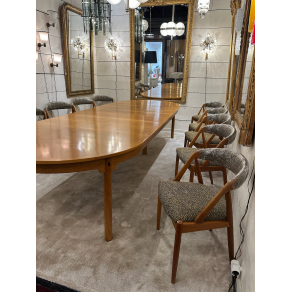 Beautiful set of 10 Scandinavian chairs in solid light oak, fully restored fabric and high-end finishes.
