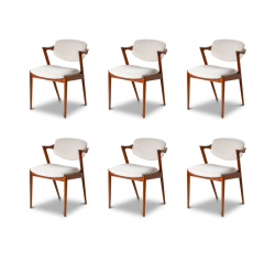 Set of 6 Scandinavian chairs in solid teak, fully restored with top-of-the-range fabric and finishes.