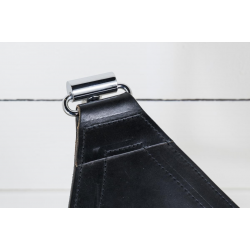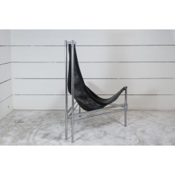 Le siège est en cuir noir épais, La base en acier tubulaire chromé. Estampillé dans l'épaisseur du cuir.