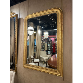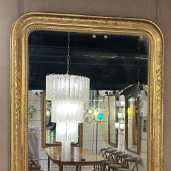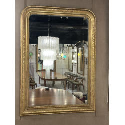 Miroir en bois doré et gravé de décorations florales, perles, très belle dorure d’origine, glace au mercure, parquet bois.