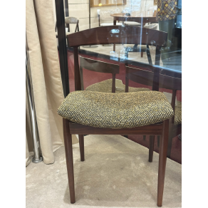 Ensemble de 6 chaises scandinaves en noyer entièrement restaurées, tissu et finitions haut de gamme.