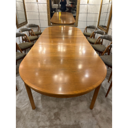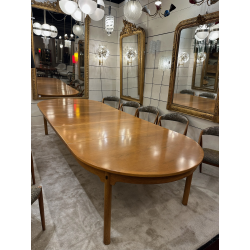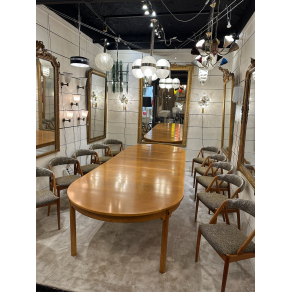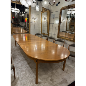 Très grande table scandinave en chêne clair et laiton doré pour 14 à 16 personnes, entièrement restaurée finition haut de gamme.