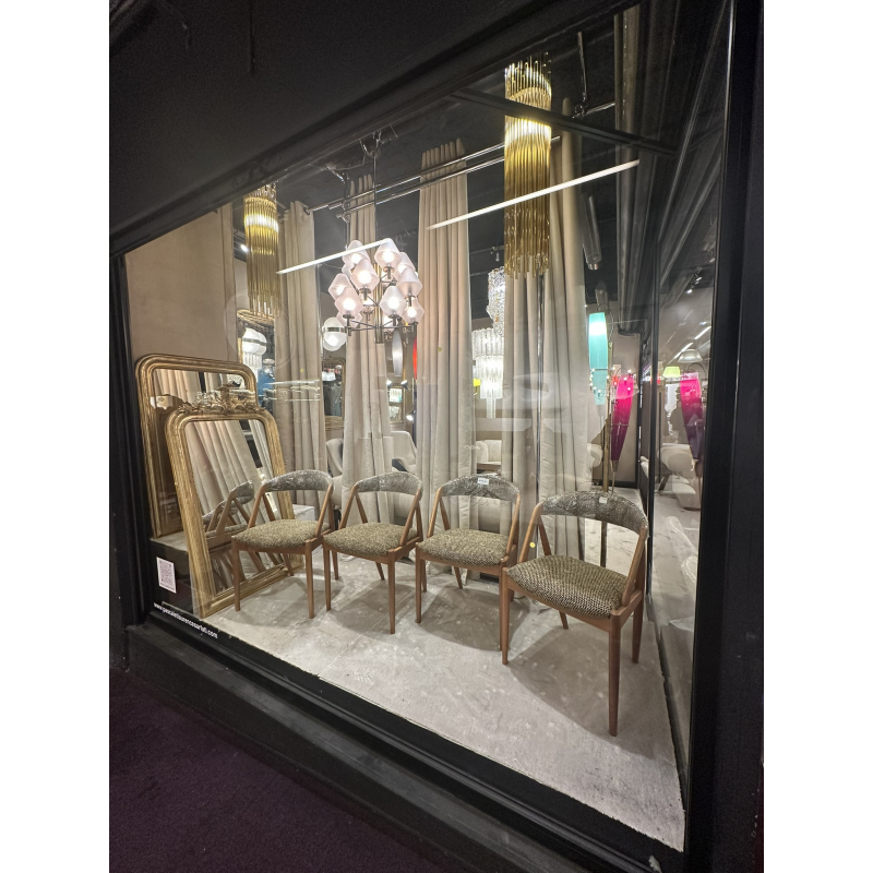 Bel ensemble de 10 Chaises en chêne clair, entièrement restaurées, tissu et finitions haut de gamme.