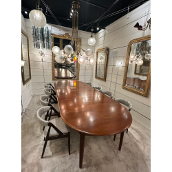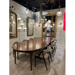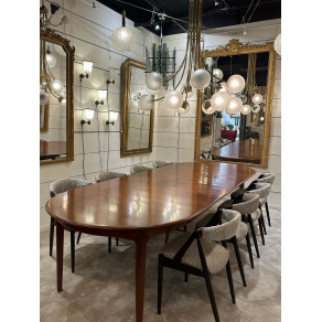 Très grande Table scandinave en teck entièrement restaurée, 4 allonges dans la meme tonalité.