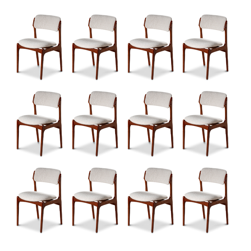 Bel ensemble de 12 chaises scandinaves en teck entièrement restaurées tissu et finitions haut de gamme.